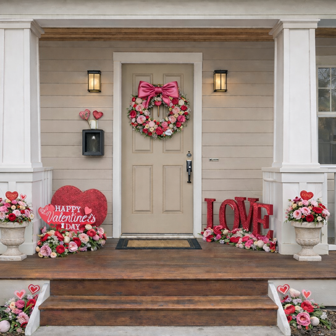 Includes a seasonal wreath, premium décor elements, coordinating accent pieces, upgraded planters with seasonal florals or topiary, garland, fairy lights, and a welcome mat or sign — all thoughtfully curated for your home and professionally installed.