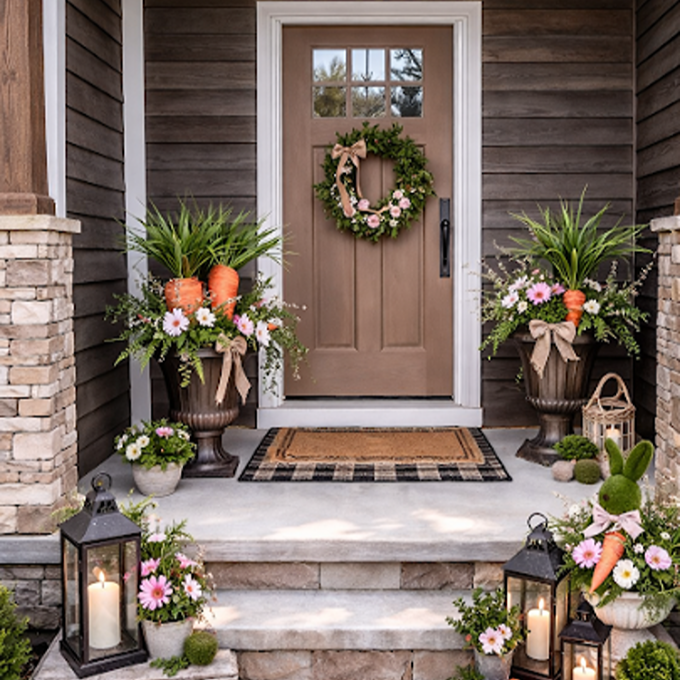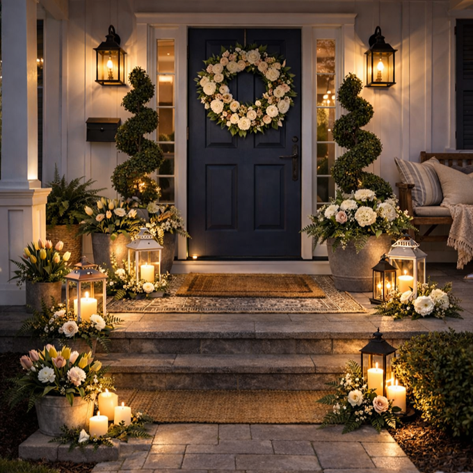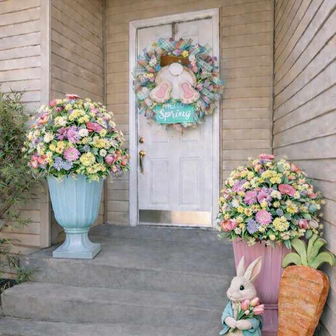 Includes a beautiful seasonal wreath, upgraded decor items, coordinating accents, planters with fresh seasonal florals, or topiary.